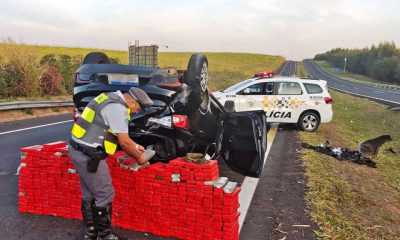Polícia Militar Rodoviária/Divulgação Carro capota e derruba 375 kg de maconha em rodovia Um carro na madrugada deste sábado (12), em uma rodovia no interior do...
