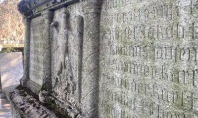Reprodução BBC As origens do monumento e suas ligações com a presença nazista na Suíça eram desconhecidas Escritos gravados em uma grande lápide de granito no...