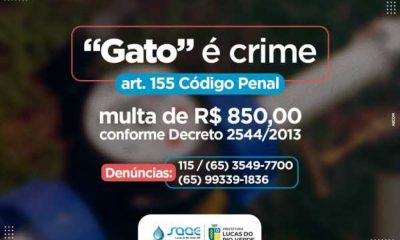 Em Lucas do Rio Verde, a equipe de fiscais do Serviço Autônomo de Água e Esgoto (Saae) realiza periodicamente, fiscalizações contra a ligação clandestina e desvio...