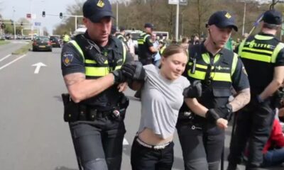 Reprodução/Twitter Greta Thunberg é carregada por policiais na Holanda A ativista ambiental sueca Greta Thunberg foi detida pela polícia holandesa em Haia, neste sábado (6), durante...
