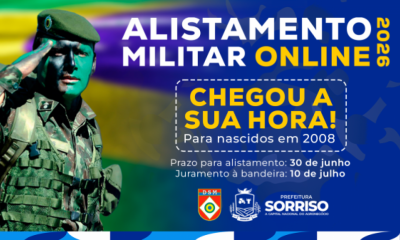 Juramento à bandeira será no dia 10 de julho A Junta de Serviço Militar (JSM) de Sorriso lembra que o alistamento militar para jovens que completam...
