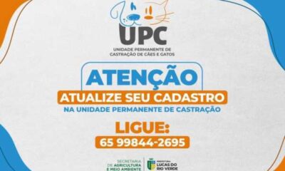Com objetivo de zerar a fila de castração de cães e gatos, que se enquadram no programa da Prefeitura de Lucas do Rio Verde *conforme critérios...