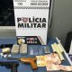 Policiais militares da Força Tática, da 26ª Companhia Independente apreenderam, na noite deste sábado (29.04), duas armas e dois tabletes de substância análogas à maconha, no...