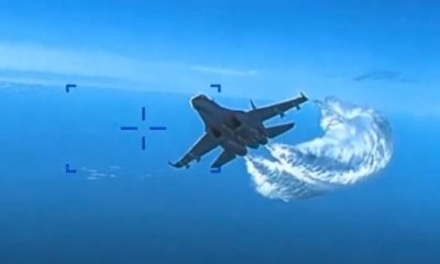 Reprodução/Força Aérea dos Estados Unidos Caça russo se aproxima de drone norte-americano que foi derrubado no Mar Negro A Força Aérea dos Estados Unidos divulgou, nesta quinta-feira...
