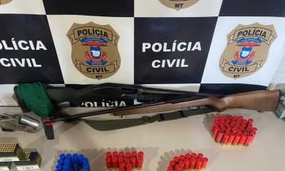 Armas e munições foram apreendidas pela equipe da Delegacia da Polícia Civil de Campos de Júlio em uma investigação para apurar o crime de disparo de...
