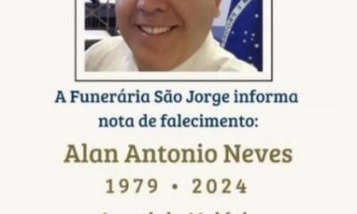 A Prefeitura Municipal lamenta o falecimento do enfermeiro Alan Antônio Neves. Além de atuar em hospitais, Alan também era professor universitário. Neste momento, amigos e familiares...