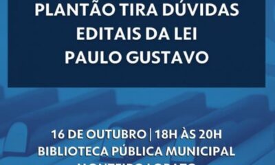 Plantão acontece hoje (16), na Biblioteca Monteiro Lobato Os fazedores de Cultura de Sorriso têm até o dia 27 de outubro (sexta-feira) para inscreverem seus projetos...