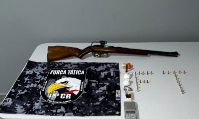 Policiais militares do 17º Batalhão prenderam um homem, por porte ilegal de arma de fogo e tráfico ilícito de drogas, nesta segunda-feira (16.2), em Lambari D’Oeste....