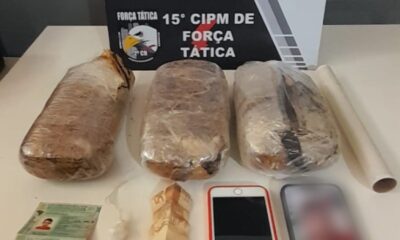 Equipes da 15ª Companhia Independente de Força Tática apreenderam três tabletes de substância análogas à maconha e prenderam um homem, de 25 anos, por tráfico de...