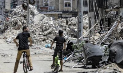 UNRWA/Mohamed Hinnawi Bloco de torre está em ruínas na cidade de Gaza após ataque aéreo israelense Moradores palestinos da Faixa de Gaza relataram ter recebido ameaças...