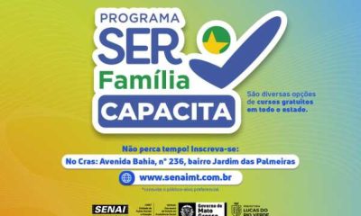 Dez cursos oferecidos pelo Programa Ser Família Capacita, idealizado pela primeira-dama de Mato Grosso, Virginia Mendes, ainda estão com vagas disponíveis, com inscrições abertas até o...