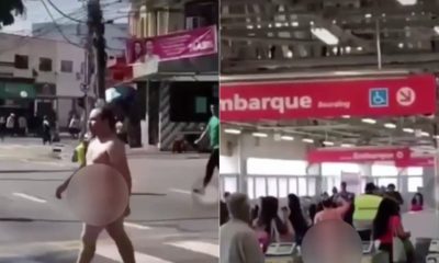 Montagem iG / Imagens: reprodução TikTok Homem andou nu pela rua e entrou em estação da CPTM, em São Paulo Um homem foi flagrado andando completamente...