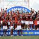 O Flamengo é campeão do Brasileirão Sub-20! Após um empate sem gols no tempo regulamentar, o Rubro-Negro venceu o Palmeiras nos pênaltis por 3 a 2 e...