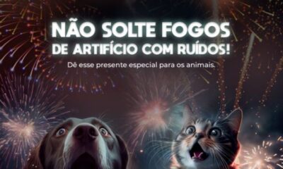 Em defesa dos animais, a Prefeitura de Cuiabá, por meio da Secretaria de Ordem Pública e Defesa Civil, reforça a campanha “Não Solte Fogos de Artifícios...