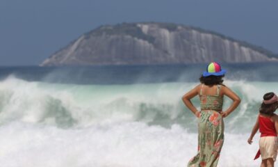 A orla da cidade do Rio de Janeiro continua sujeita a ressaca nesta segunda-feira (6). Ontem (5), fortes ondas invadiram o calçadão e chegaram a atingir a...
