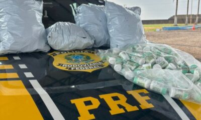 Na quarta (27), na BR 163, em Rondonópolis-MT, a Polícia Rodoviária Federal (PRF) apreendeu 884 frascos de de medicação analgésica sem registro da Agência Nacional de Vigilância...
