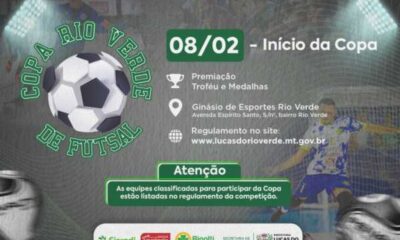A Copa Rio Verde de Futsal 2025 já começou! A tradicional competição, que é realizada pela Prefeitura de Lucas do Rio Verde, por meio da Secretaria...