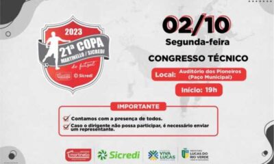 Equipes inscritas para a 21ª Copa Municipal Martinello / Sicredi de Futsal 2023, participam, às 19h desta segunda-feira (2), do congresso técnico sobre o regulamento da...