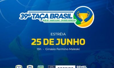O Município recebe a partir deste domingo (25), a 39ª Taça Brasil Sub-20 masculino, Divisão Especial de Futsal. A competição acontece até o dia 01 de...