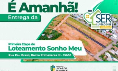 A Prefeitura de Lucas do Rio Verde realiza nesta sexta-feira (03), às 15h30, a primeira etapa do Loteamento Sonho Meu, que contempla 107 lotes que fazem...