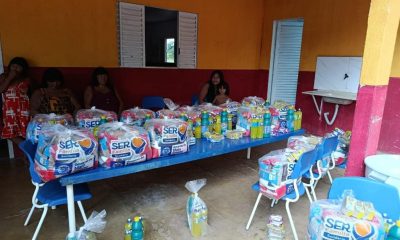 Mil cestas de alimentos, kits de higiene e limpeza, roupas e cobertores foram entregues, nesta segunda-feira (27), aos indígenas da etnia Kayapó, na Aldeia Piaraçu, no...