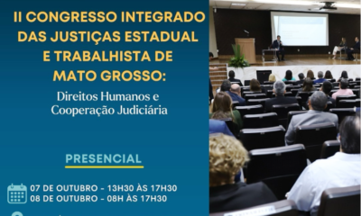 Com o tema “Direitos Humanos e Cooperação Judiciária”, o II Congresso Integrado das Justiça Estadual e Trabalhista de Mato Grosso será realizado em 7 e 8...