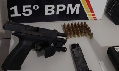 Policiais militares do 15º Batalhão prenderam em flagrante um homem de 21 anos por porte ilegal de arma de fogo e violação de domicílio, na noite...