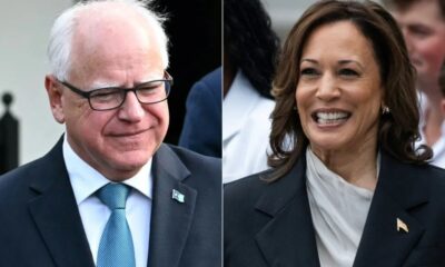 Jim Watson e Chris Kleponis/AFP A vice-presidente dos EUA, Kamala Harris (dir.), e o governador de Minnesota, Tim Walz: chapa democrata se forma A vice-presidente e...