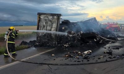 O Corpo de Bombeiros Militar de Mato Grosso (CBMMT) combateu, na tarde desta quinta-feira (12.2), um incêndio em uma carreta carregada com plumas de algodão às...