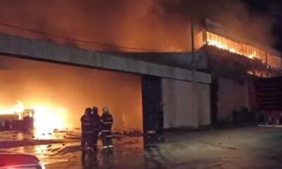 Arquivo pessoal Imagens do galpão atingido pelo fogo Um incêndio de grandes proporções atingiu um galpão na noite desta segunda-feira (8), no Jardim dos Oliveiras, na...