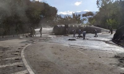 Os bombeiros controlaram o incêndio no caminhão-tanque bitrem, carregado de combustível, que tombou nesta quinta-feira (8), na altura do km 96 da Rodovia Washington Luiz (BR-040)...