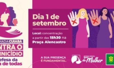 Iniciativa da Prefeitura de Cuiabá, por meio da Secretaria Municipal da Mulher e Núcleo da Primeira-Dama, a Caminhada ‘Cuiabá contra o Feminicídio’, idealizada pela primeira-dama Márcia...
