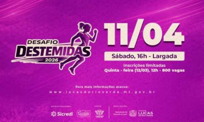 Com a oferta de 800 vagas destinadas às mulheres luverdenses, começam nesta quinta-feira (12) as inscrições para o Desafio das Destemidas 2026. A competição será realizada...