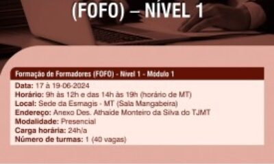 Atenção, magistrados e magistradas de Cuiabá e Várzea Grande! Já estão abertas as inscrições para uma nova turma do Curso “Formação de Formadores – FOFO” Nível...