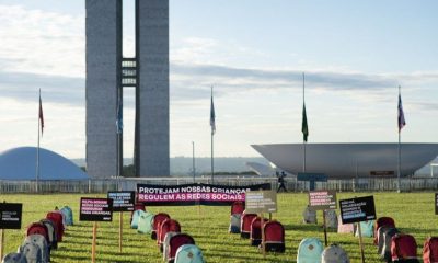 Mochilas foram posicionadas na manhã desta terça-feira (2) no gramado do Congresso Nacional, em Brasília, para homenagear vítimas de violência nas escolas. Segundo o movimento Avaaz,...