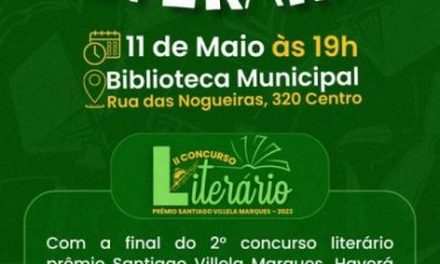A final do “II Concurso Literário – Prêmio Santiago Villela Marques”, será nesta quinta-feira (11), às 19h, na Biblioteca Pública Municipal Professora Regina Helena Bongiovani Moscatto,...