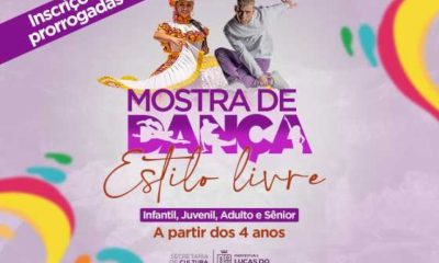 A Secretaria de Cultura e Turismo de Lucas do Rio Verde informa que as inscrições para a Mostra de Dança Estilo Livre foram prorrogadas. Os participantes...