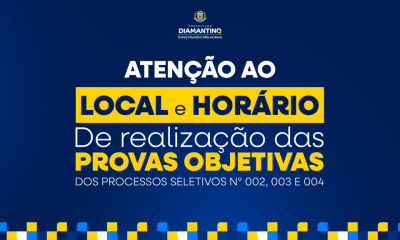 A Prefeitura de Diamantino, por meio da Secretaria Municipal de Administração informa que as provas dos processos seletivos públicos em andamento no município (Editais nº 002/2026,...