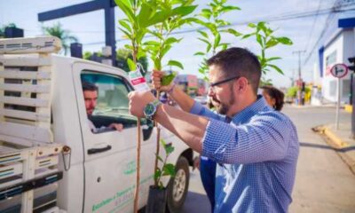 Quem passou pela Avenida Mato Grosso, esquina com a Avenida Paraná, nos cruzamentos dos semáforos nesta quarta-feira, 05 de junho, teve a oportunidade de receber mudas...