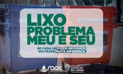 O Serviço Autonomo de Água e Esgoto (Saae) de Lucas do Rio Verde, orienta a população para o uso adequado dos contentores com relação ao descarte...