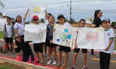 Alunos da Escola Municipal Marcelino Espindola Dutra, no bairro Parque das Emas em Lucas do Rio Verde, realizaram uma ação de conscientização no trânsito, na manhã...