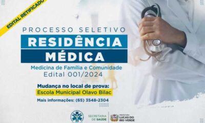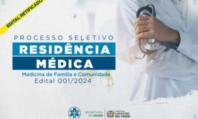 A Prefeitura de Lucas do Rio Verde realiza no próximo domingo (19), a prova do processo seletivo para a Residência Médica em Medicina de Família e...