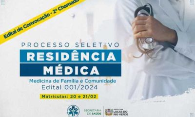 Já está disponível no site da Prefeitura de Lucas do Rio Verde, o segundo edital de convocação dos aprovados no processo seletivo para a Residência Médica...