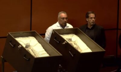 Reprodução/YouTube/Câmara dos Deputados do México – 13.09.2023 Corpos são apresentados no México Supostos corpos de seres extraterrestres foram exibidos nesta terça-feira (12) em uma audiência pública...