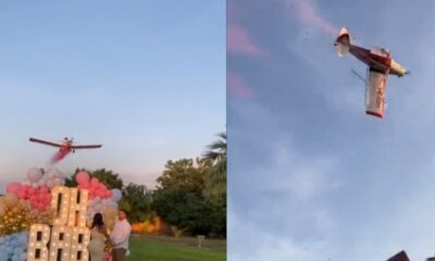 Reprodução/Twitter Acidente de avião em chá revelação no México Um piloto faleceu ao perder o controle de um avião durante um chá revelação no México na...