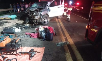 PRF/Divulgação Grave acidente deixa quatro mortos e dois feridos na BR-163 Um grave acidente entre dois veículos deixou quatro mulheres mortas na noite de ontem (10)...