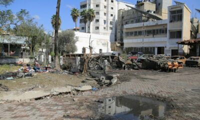 Marwan Sawwaf/ Alef Multimídia/ Oxfam – 17/10/2023 Os residentes de Gaza vasculham os restos do parque infantil onde as crianças de Gaza brincavam no Hospital Al...