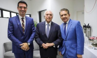 Crédito: Diego Rodrigues/MPC Ex-presidente da República Michel Temer e presidentes Sérgio Ricardo (TCE), Max Russi (ALMT) e Leonardo Bortolin (AMM). Clique aqui para ampliar O presidente...