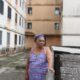 Uma parte do pátio interno entre os prédios do Conjunto Habitacional Santa Etelvina II foi cultivada com vasos de plantas, com folhagem densa que lembra um...