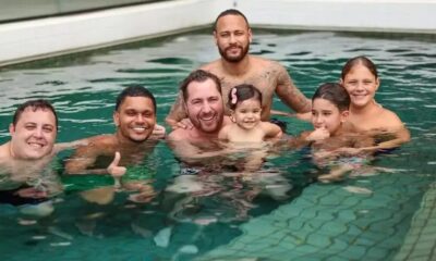 O jogador Neymar, de 31 anos, compartilhou, nesta sexta-feira (22), um clique de um dia de piscina com o filho Davi Lucca e amigos, como Cris...
